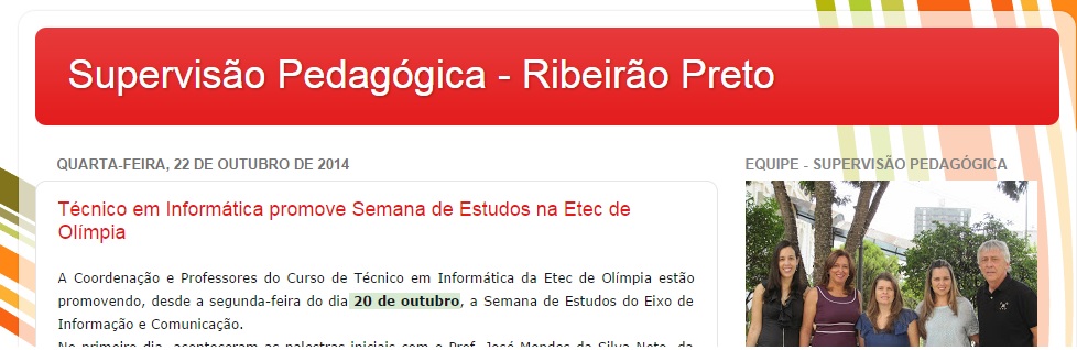 Visitem o blog da supervisão: supervisaorpreto.blogspot.com.br/ e verifiquem os projetos pedagógicos realizados na região e que possamos desenvolvê-los na nossa unidade descentralizada.